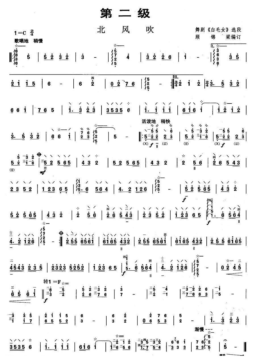 柳琴考级曲谱【柳琴考级曲目二级:北风吹】
