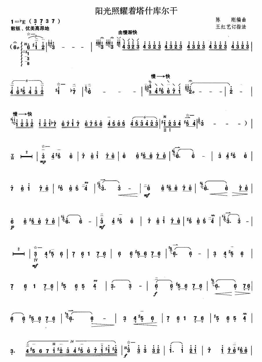 柳琴考级曲谱【柳琴十级:阳光照耀着塔什库尔干】