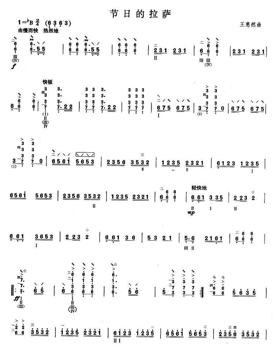 柳琴考级曲谱【柳琴考级曲目九级:节日的拉萨】简谱五线谱附歌词是乐器资源网于2015年07月12日 21:57:46整理更新,内容收录在柳琴乐谱栏目;乐器资源网免费分享专业、准确、规范、高清的柳琴乐谱简谱五线谱歌词等电子版资料,欢迎在线免费下载;乐器资源网无需注册会员,即可直接免费下载各类乐器学习相关资源。