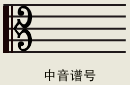 C谱号基本上是由上下两个英文字母“C”反过来,再加上两个竖线,(一根粗、一根细)组成。