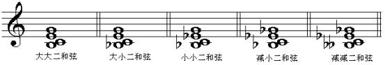 小小三和弦第三转位(二和弦)的结构是:低音(七音)与根音是大二度音程、根音与三音是小三度音程、三音与五音是大三度音程。简称“大二加小三加大三”。