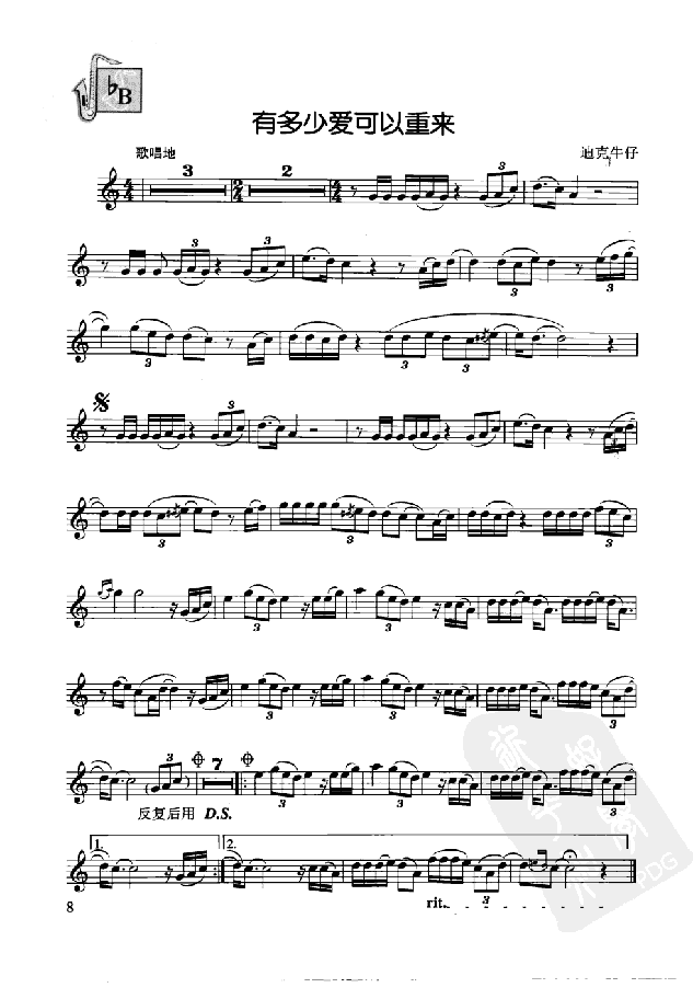 萨克斯通俗名曲谱【有多少爱可以重来】降B调