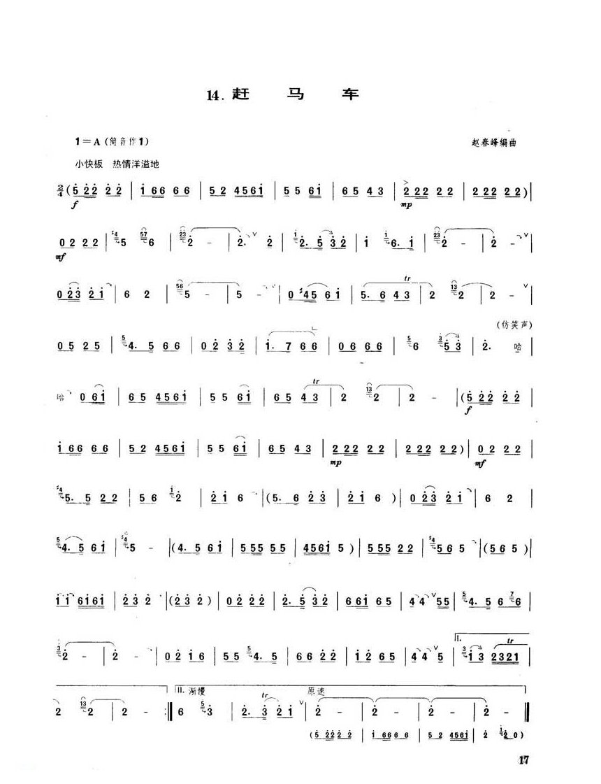 唢呐独奏乐曲【赶马车】赵春峰编曲简谱五线谱附歌词是乐器资源网于2017年03月12日 02:33:18整理更新,内容收录在唢呐乐谱栏目;乐器资源网免费分享专业、准确、规范、高清的唢呐乐谱简谱五线谱歌词等电子版资料,欢迎在线免费下载;乐器资源网无需注册会员,即可直接免费下载各类乐器学习相关资源。