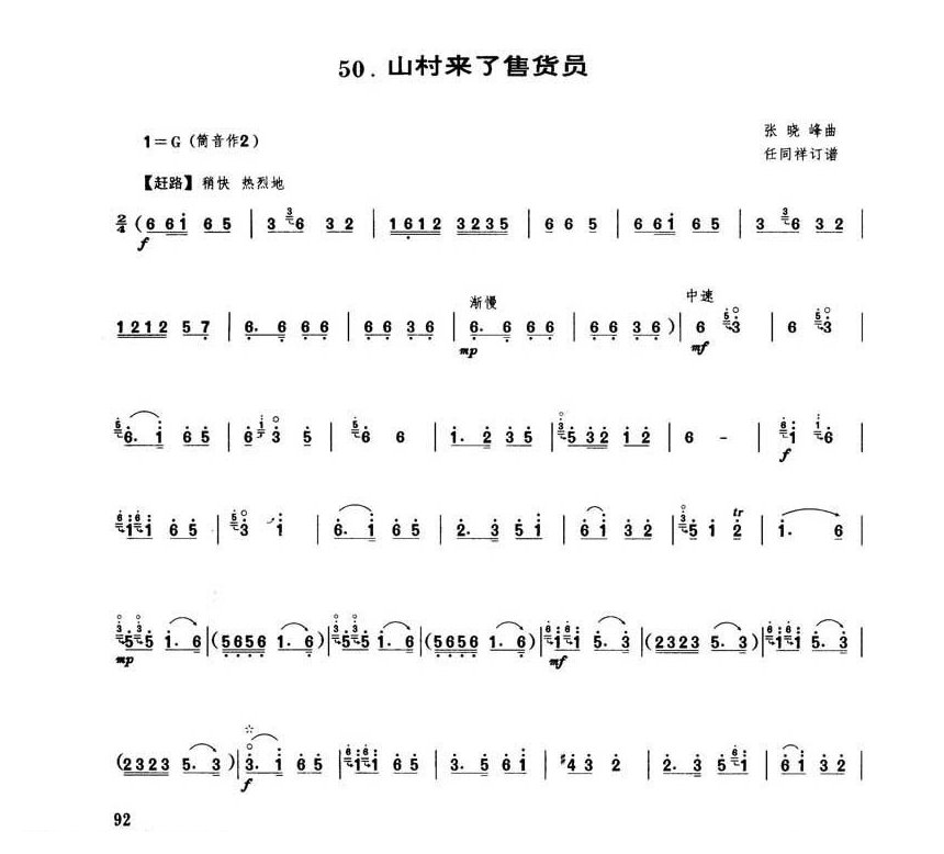 唢呐独奏乐曲【山村来了售货员】张晓峰曲 任同祥订谱简谱五线谱附歌词是乐器资源网于2017年03月12日 08:23:11整理更新,内容收录在唢呐乐谱栏目;乐器资源网免费分享专业、准确、规范、高清的唢呐乐谱简谱五线谱歌词等电子版资料,欢迎在线免费下载;乐器资源网无需注册会员,即可直接免费下载各类乐器学习相关资源。