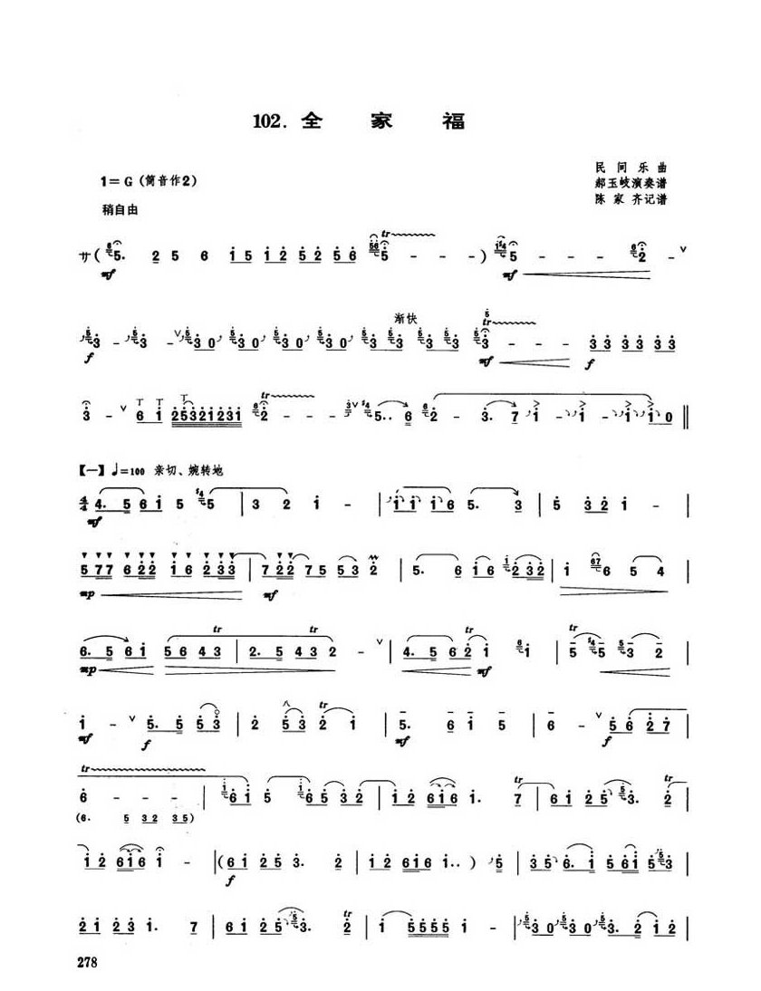 唢呐独奏乐曲【全家福】民间乐曲 郝玉岐演奏谱