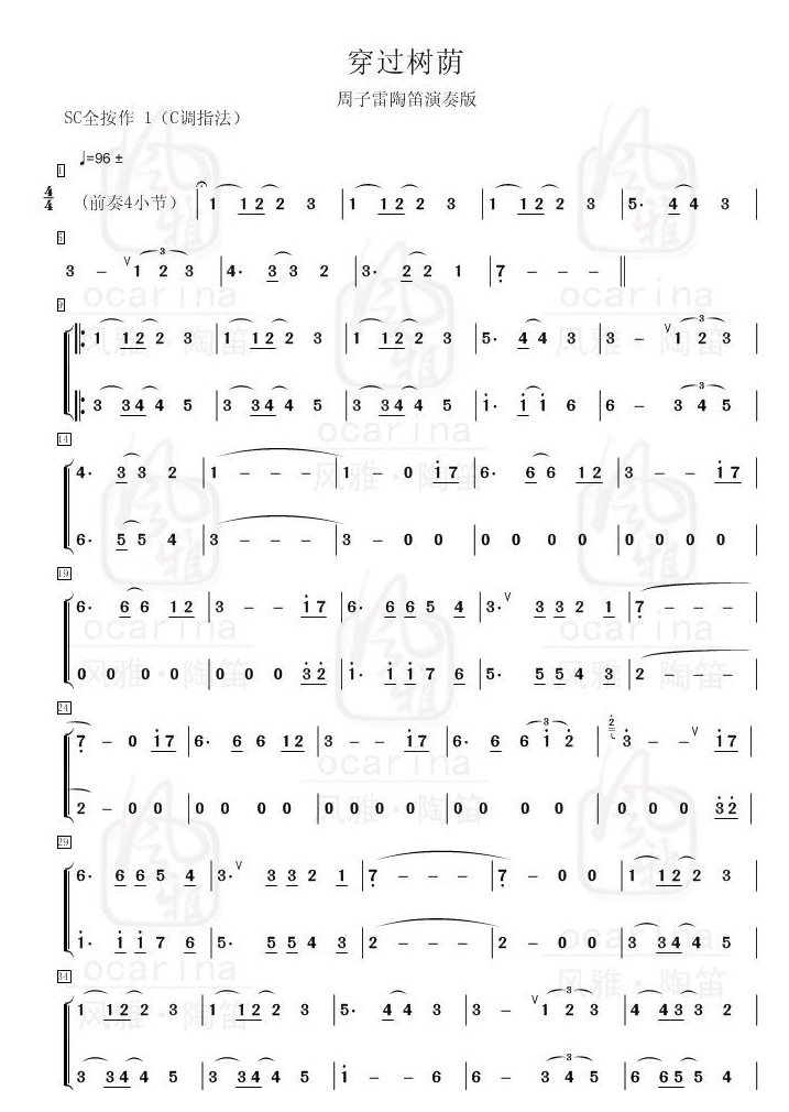陶笛谱【穿过树荫】简谱五线谱附歌词是乐器资源网于2017年03月06日 13:49:01整理更新,内容收录在陶笛乐谱栏目;乐器资源网免费分享专业、准确、规范、高清的陶笛乐谱简谱五线谱歌词等电子版资料,欢迎在线免费下载;乐器资源网无需注册会员,即可直接免费下载各类乐器学习相关资源。
