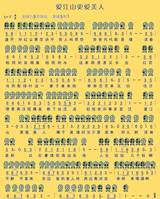 六孔陶笛曲谱 爱江山更爱美人简谱五线谱附歌词是乐器资源网于2014年05月21日 07:04:48整理更新,内容收录在陶笛乐谱栏目;乐器资源网免费分享专业、准确、规范、高清的陶笛乐谱简谱五线谱歌词等电子版资料,欢迎在线免费下载;乐器资源网无需注册会员,即可直接免费下载各类乐器学习相关资源。