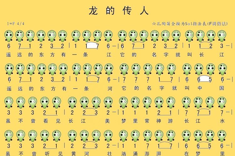 六孔陶笛曲谱 龙的传人