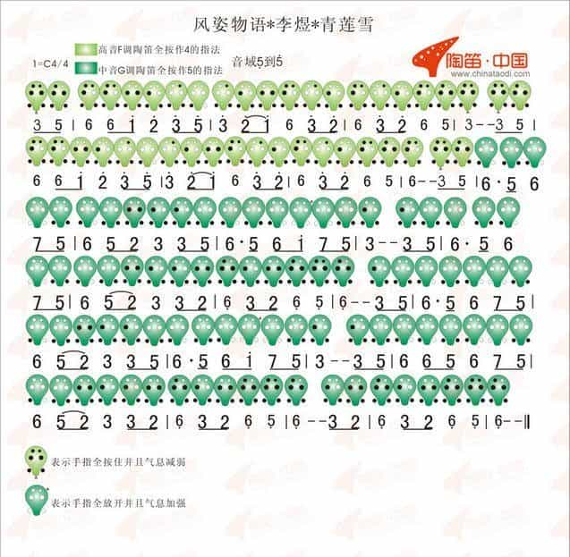 6孔陶笛曲谱:风姿物语·李煜·青莲雪