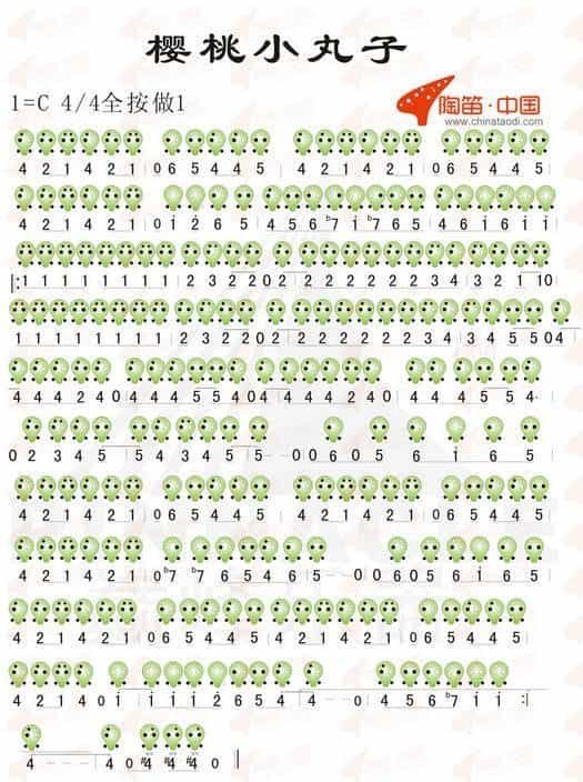 6孔陶笛曲谱:樱桃小丸子