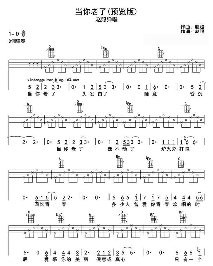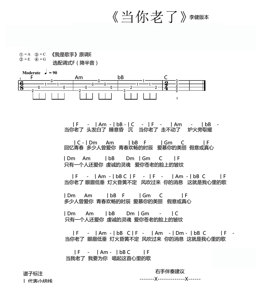 UKULELE谱【当你老了】李健《我是歌手》简谱五线谱附歌词是乐器资源网于2016年10月02日 16:40:14整理更新,内容收录在尤克里里乐谱栏目;乐器资源网免费分享专业、准确、规范、高清的尤克里里乐谱简谱五线谱歌词等电子版资料,欢迎在线免费下载;乐器资源网无需注册会员,即可直接免费下载各类乐器学习相关资源。