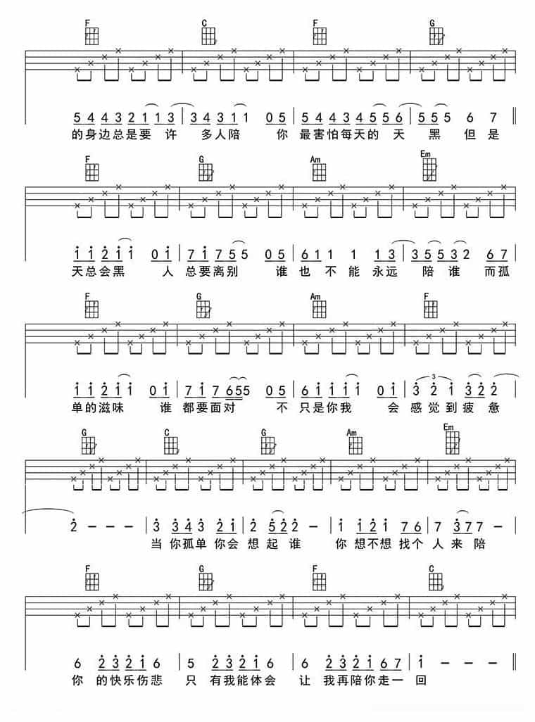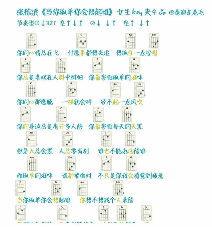 UKULELE谱【当你孤单你会想起谁】张栋梁