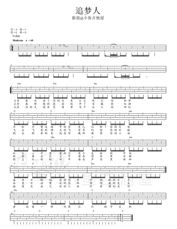 尤克里里图片谱【追梦人】UKULELE弹唱曲谱