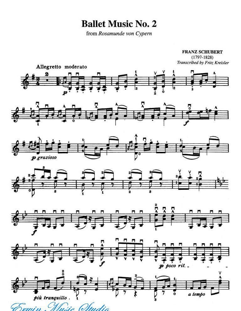 克莱斯勒-舒伯特-芭蕾舞音乐二号 Fritz Kreisle - Franz Schubert Ballet Music No.2简谱五线谱附歌词是乐器资源网于2014年09月11日 21:43:27整理更新,内容收录在小提琴乐谱栏目;乐器资源网免费分享专业、准确、规范、高清的小提琴乐谱简谱五线谱歌词等电子版资料,欢迎在线免费下载;乐器资源网无需注册会员,即可直接免费下载各类乐器学习相关资源。