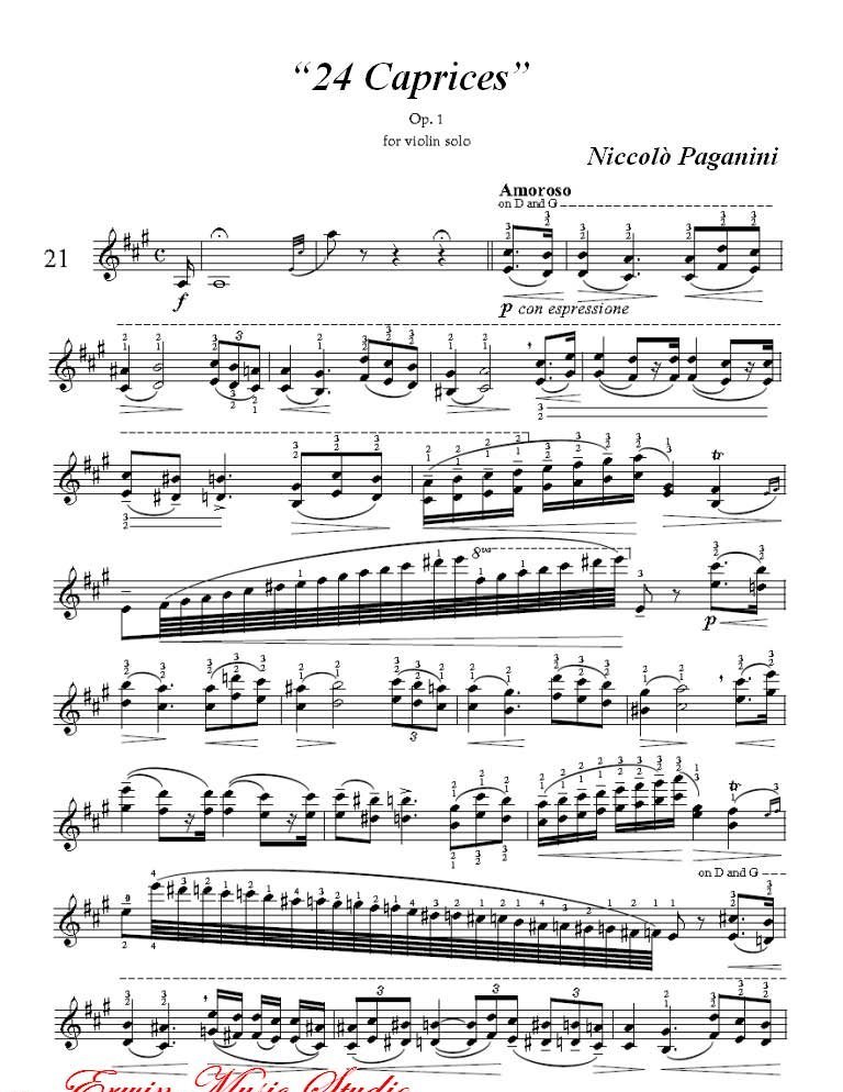 帕格尼尼-24首随想曲 作品21简谱五线谱附歌词是乐器资源网于2014年05月14日 22:13:39整理更新,内容收录在小提琴乐谱栏目;乐器资源网免费分享专业、准确、规范、高清的小提琴乐谱简谱五线谱歌词等电子版资料,欢迎在线免费下载;乐器资源网无需注册会员,即可直接免费下载各类乐器学习相关资源。