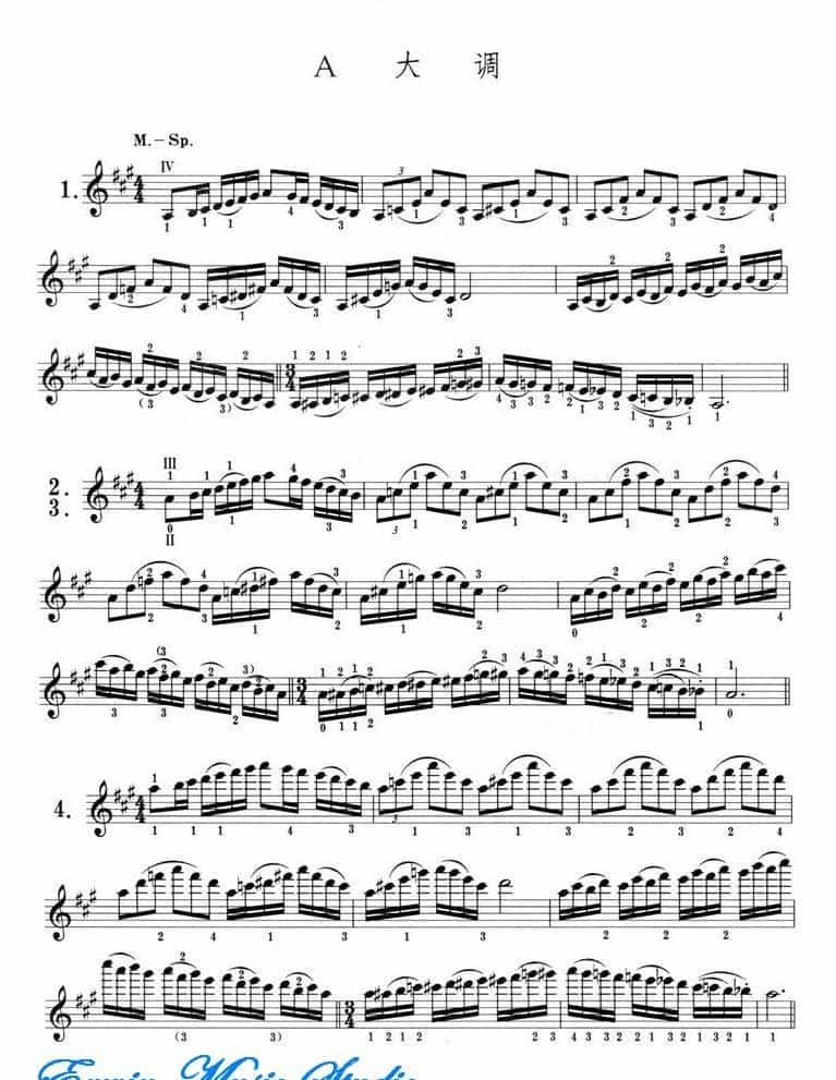 小提琴音阶体系 每日大、小調音阶练习 A大调简谱五线谱附歌词是乐器资源网于2014年09月20日 15:59:43整理更新,内容收录在小提琴乐谱栏目;乐器资源网免费分享专业、准确、规范、高清的小提琴乐谱简谱五线谱歌词等电子版资料,欢迎在线免费下载;乐器资源网无需注册会员,即可直接免费下载各类乐器学习相关资源。
