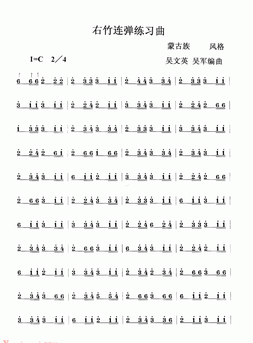 扬琴曲谱:右竹连弹练习曲简谱五线谱附歌词是乐器资源网于2013年04月03日 16:37:56整理更新,内容收录在扬琴乐谱栏目;乐器资源网免费分享专业、准确、规范、高清的扬琴乐谱简谱五线谱歌词等电子版资料,欢迎在线免费下载;乐器资源网无需注册会员,即可直接免费下载各类乐器学习相关资源。