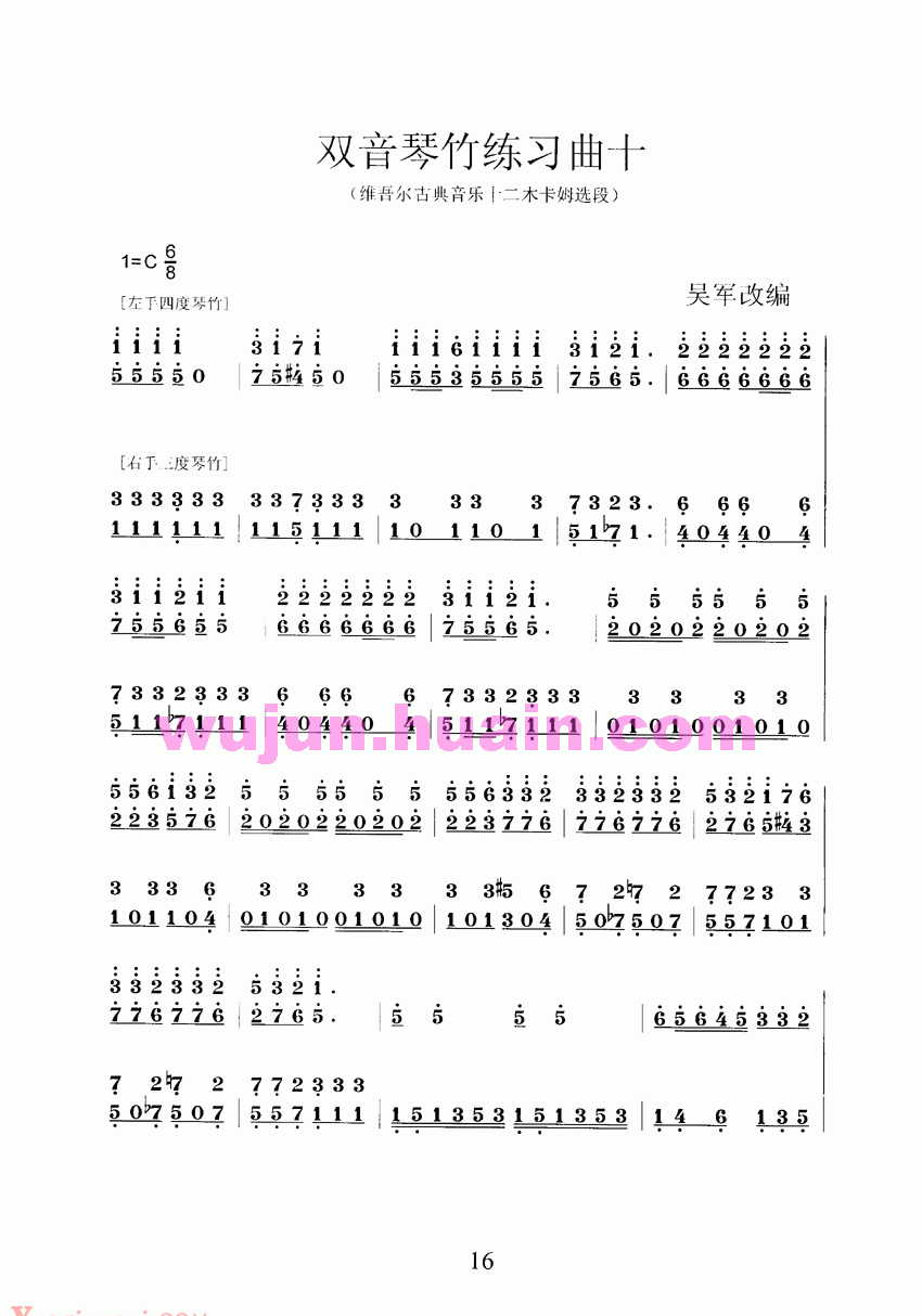扬琴曲谱:扬琴双音琴竹练习曲30首之十