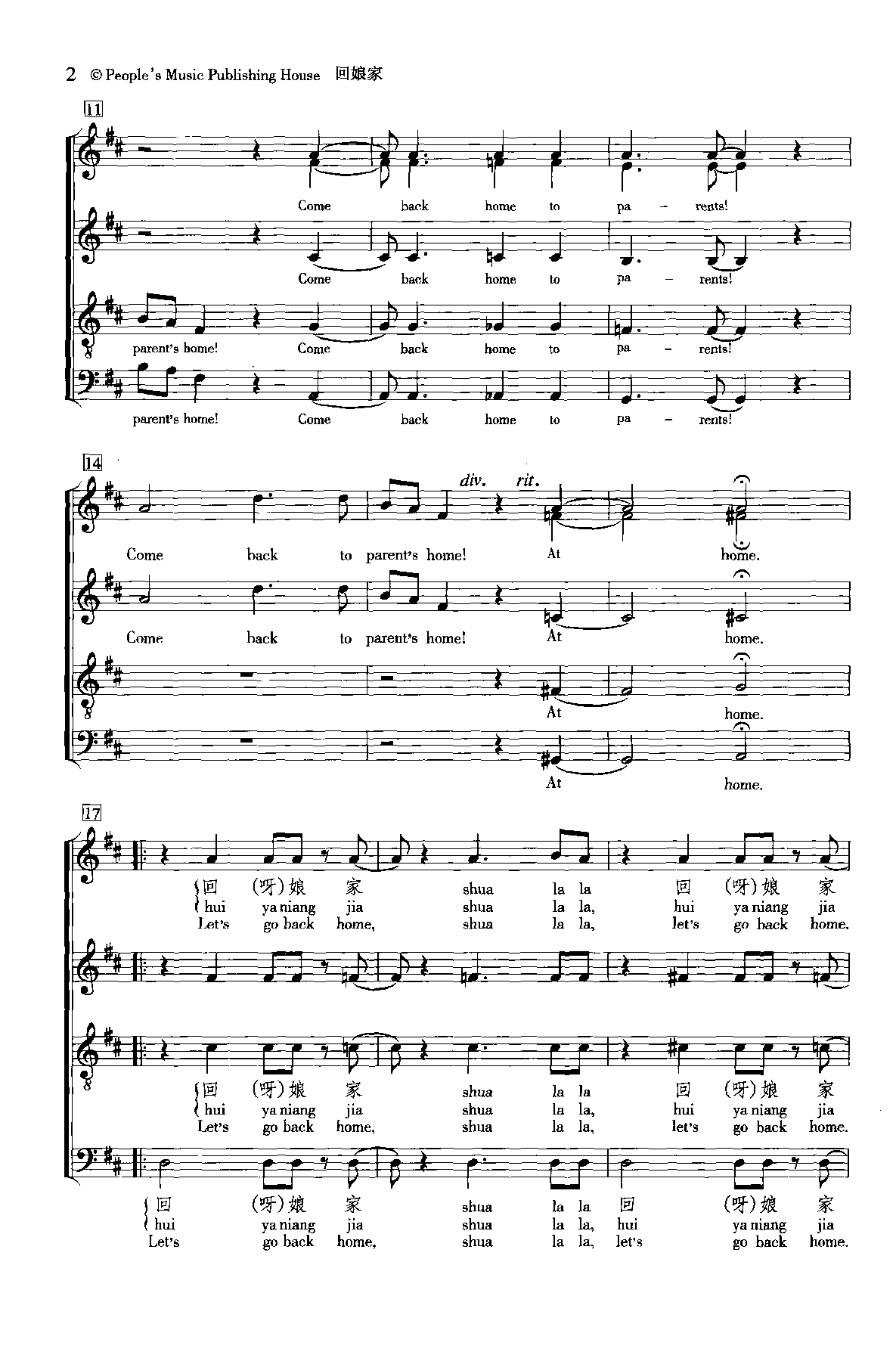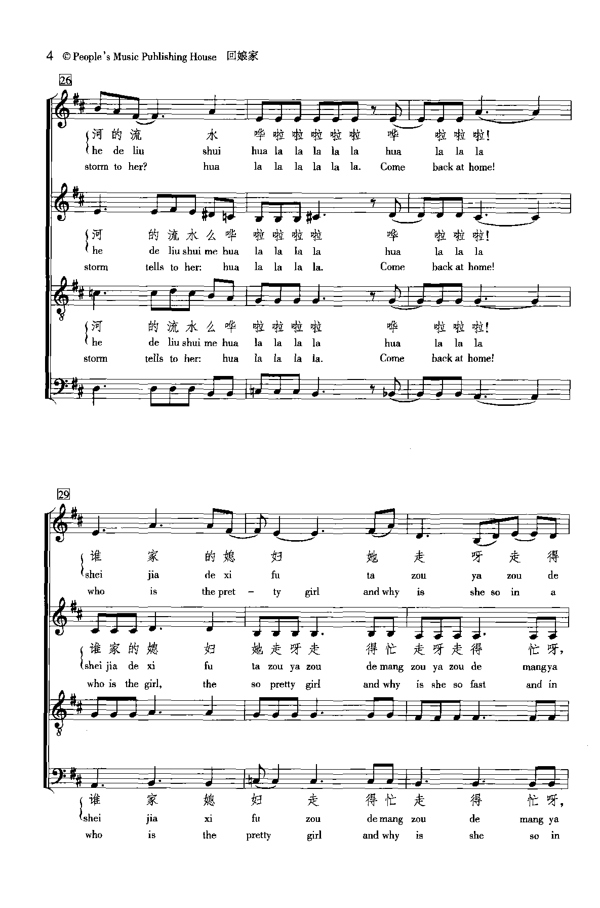 无伴奏合唱曲谱:回娘家 河北民歌 叶继红改词 五线谱