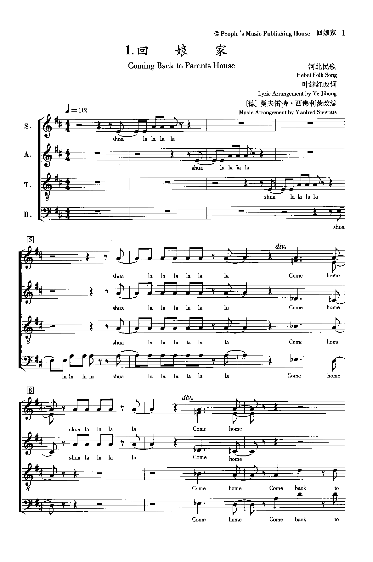 民歌乐谱 185 阅读