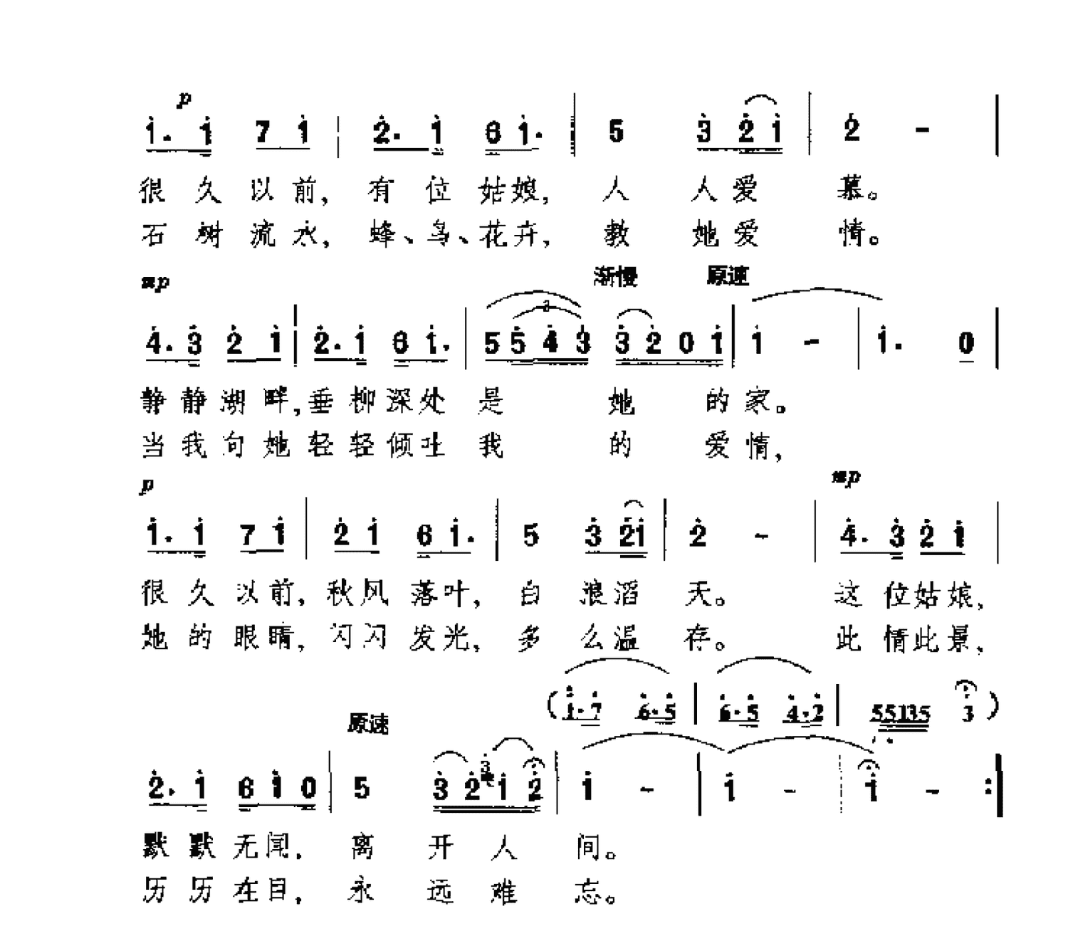 民间歌曲简谱:很久以前(美国民歌)