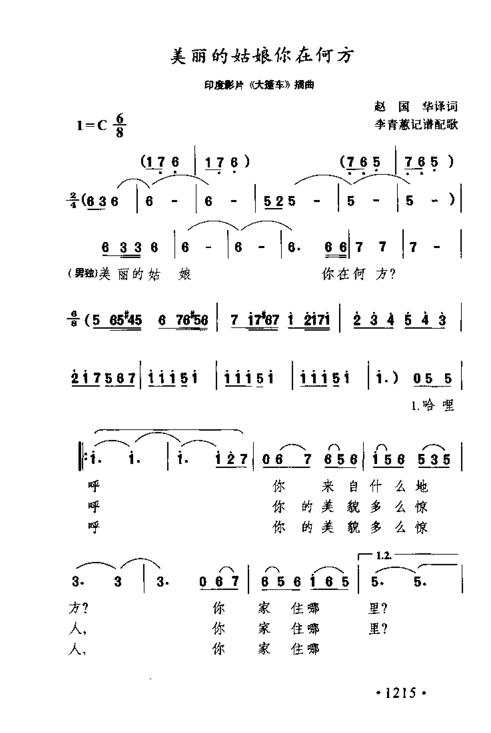美丽的姑娘在何方 印度影片《大篷车》插曲