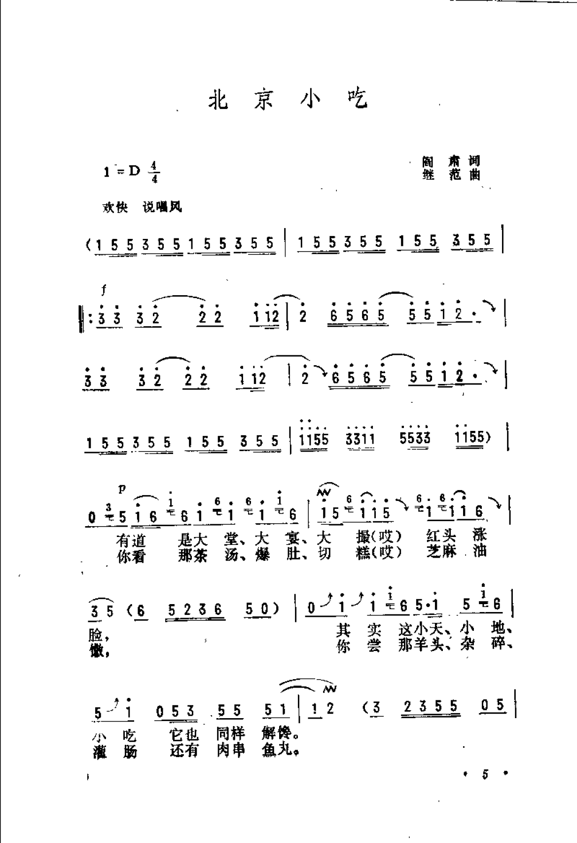 抒情歌曲简谱:北京小吃 阎肃词 继范曲