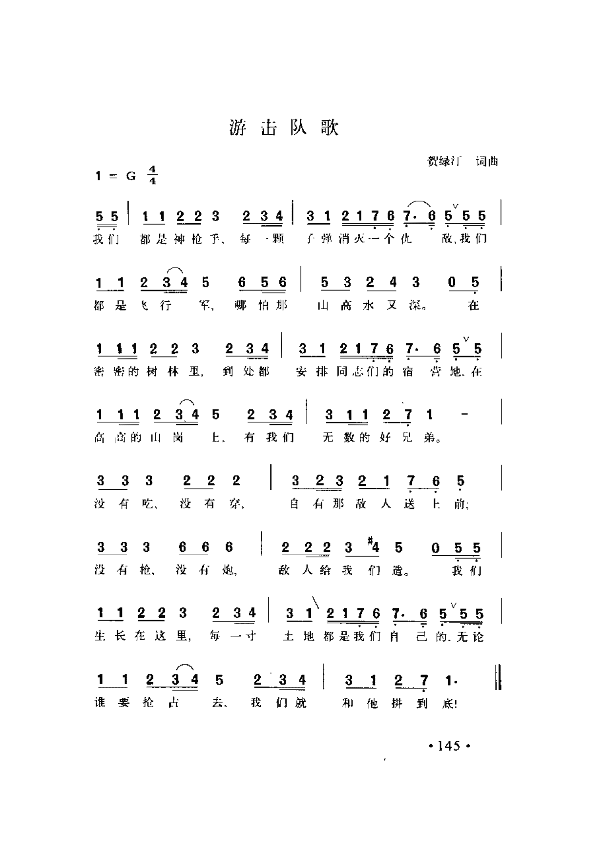 游击队歌 贺绿汀词曲