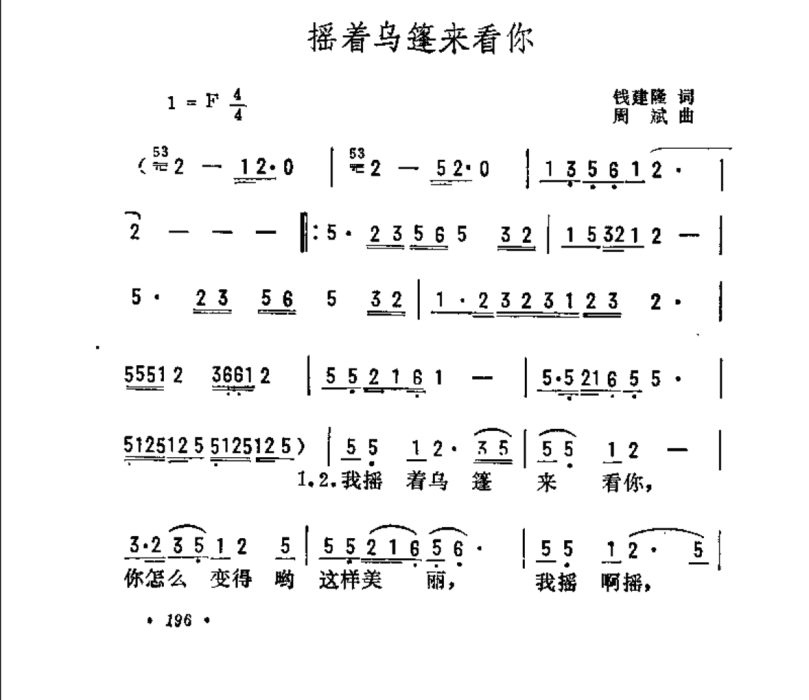 抒情歌曲简谱:摇着乌篷来看你 钱建隆词 周斌曲