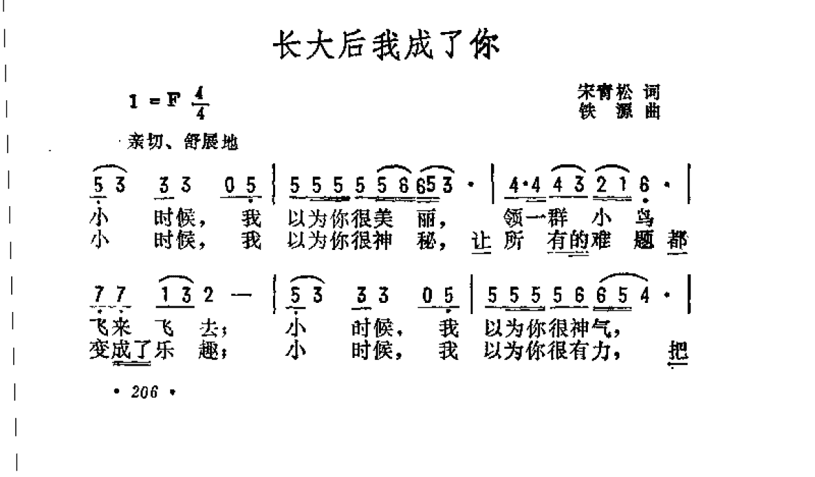 抒情歌曲简谱:长大后我成了你 宋青松词 铁源曲