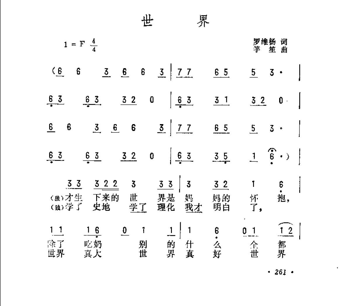 抒情歌曲简谱:世界 罗维杨词 竽笙曲