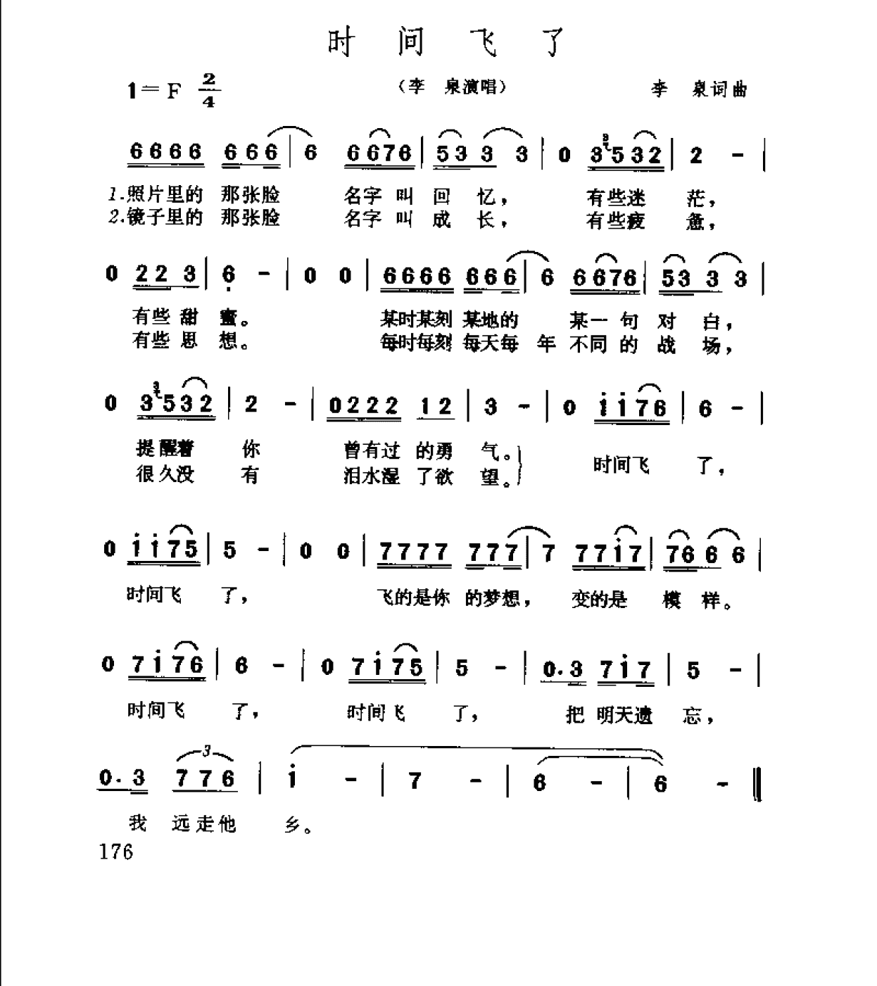 简谱:时间飞了·2001李泉词曲(李泉演唱)