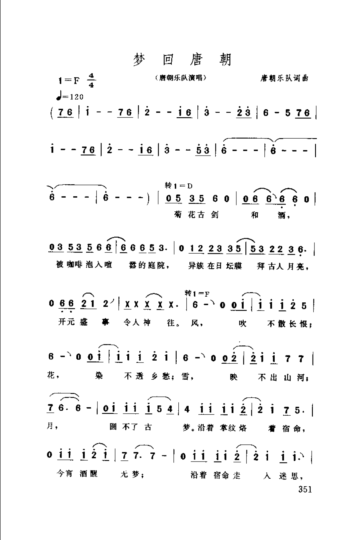 简谱:梦回唐朝·1993唐朝乐队词曲(唐朝乐队演唱)
