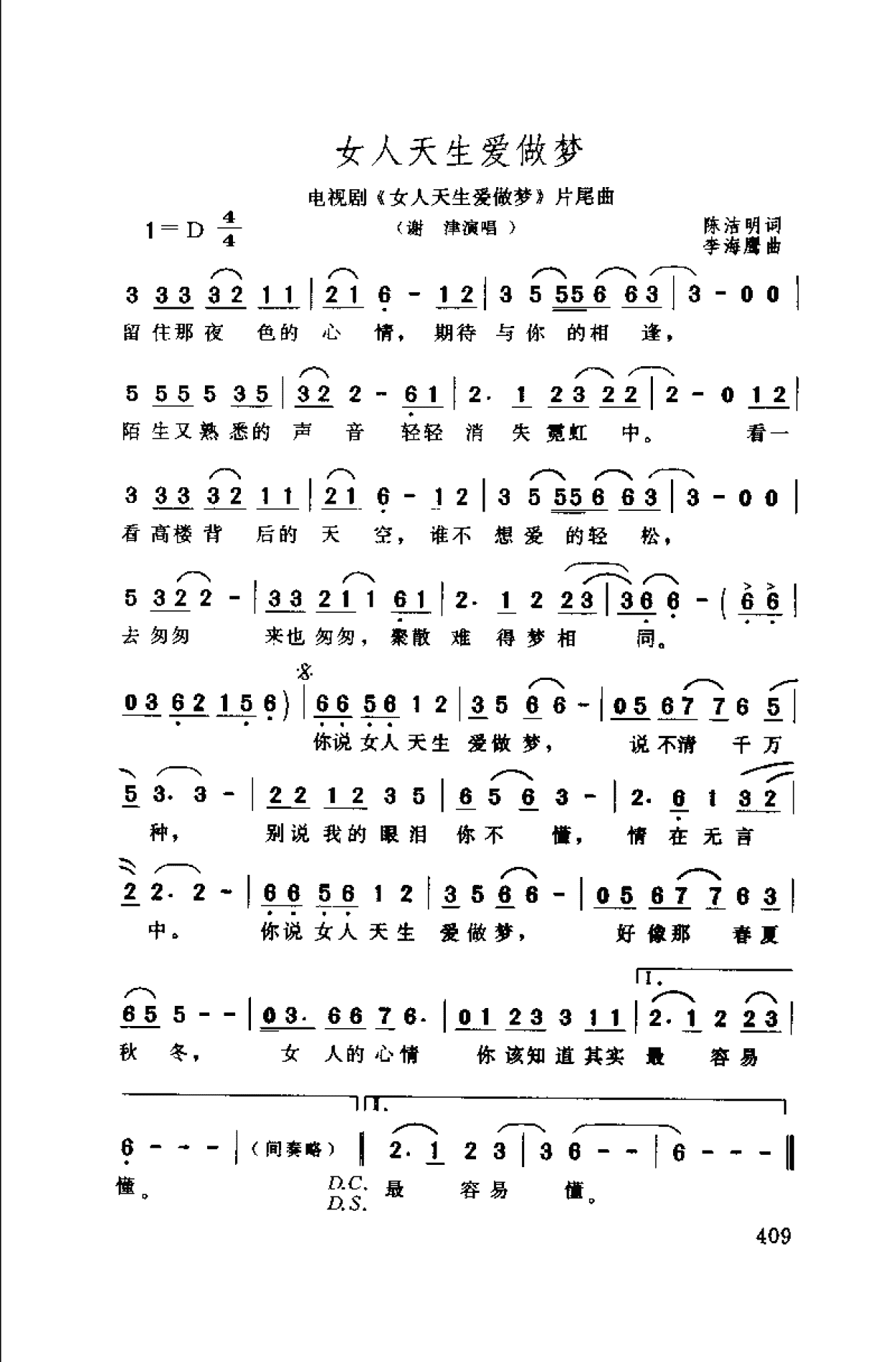 女人天生爱做梦 电视剧《女人天生爱做梦》片尾曲·1994陈洁明词 李海鹰曲(谢津演唱) 佚名 网络 2025-02-16 女人天生爱做梦 电视剧《女人天生爱做梦》片尾曲·1994陈洁明词 李海鹰曲(谢津演唱)
