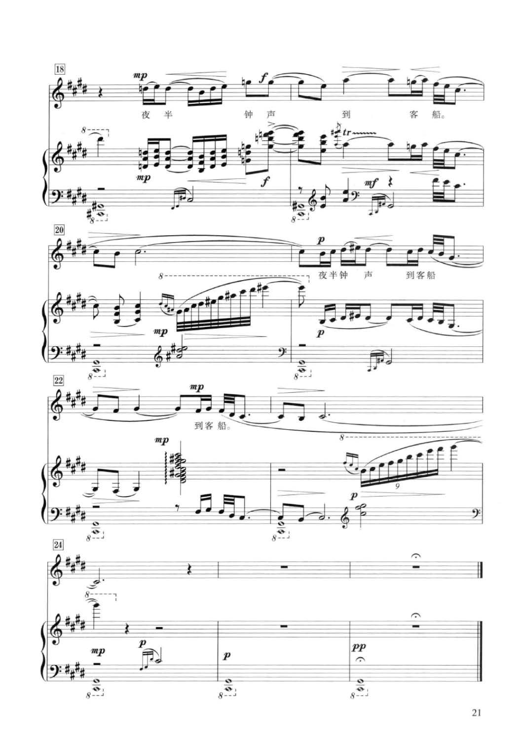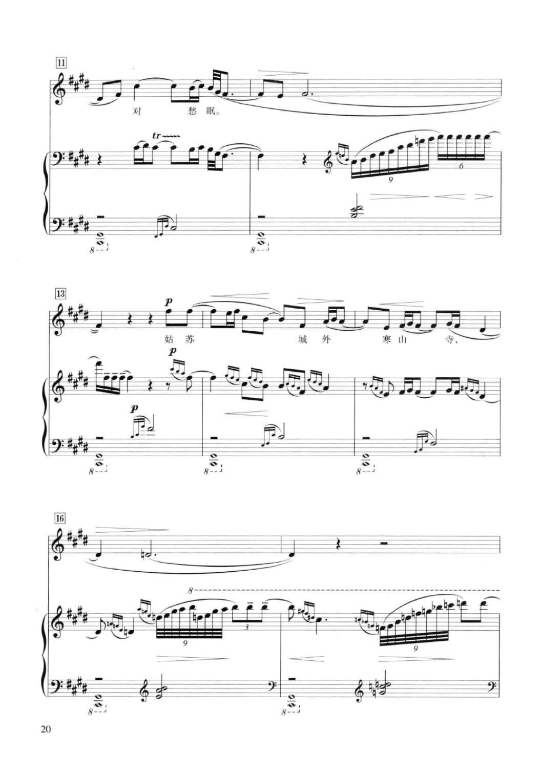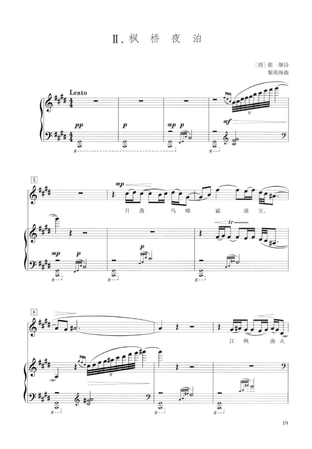 声乐五线谱:枫桥夜泊[唐]张继诗 黎英海曲