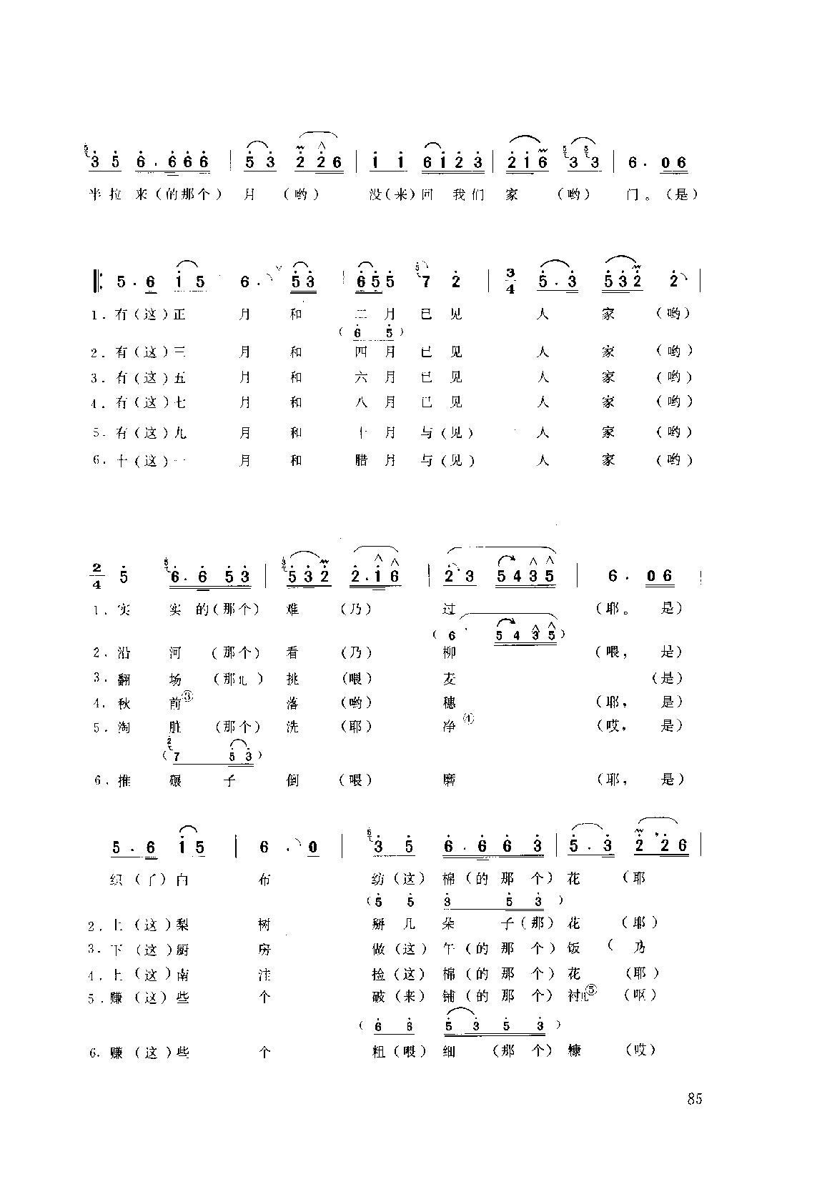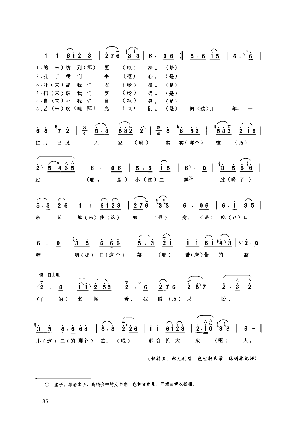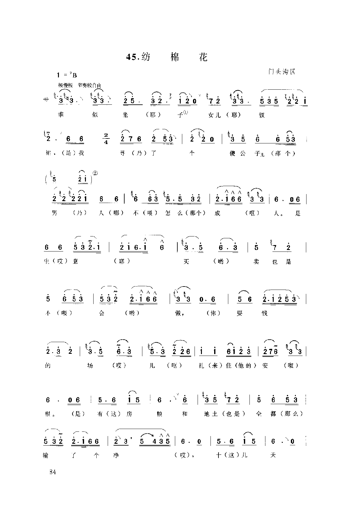 花会歌:纺棉花 门头沟区(北京民间歌曲简谱)